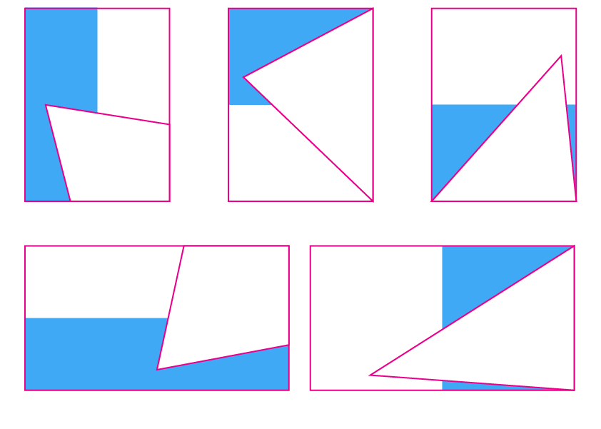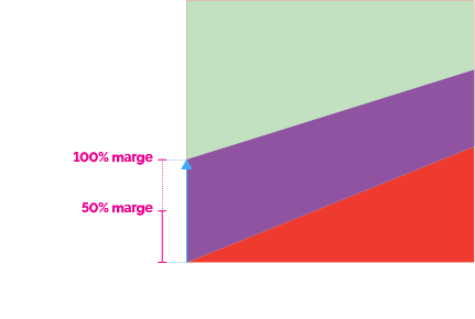 De grote van het kleine vlak wordt bepaald aan de hand van de breedte bij de rand: deze breedte varieert tussen 100% en 50% van de marge.