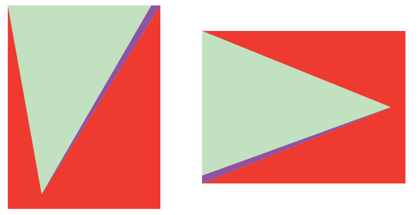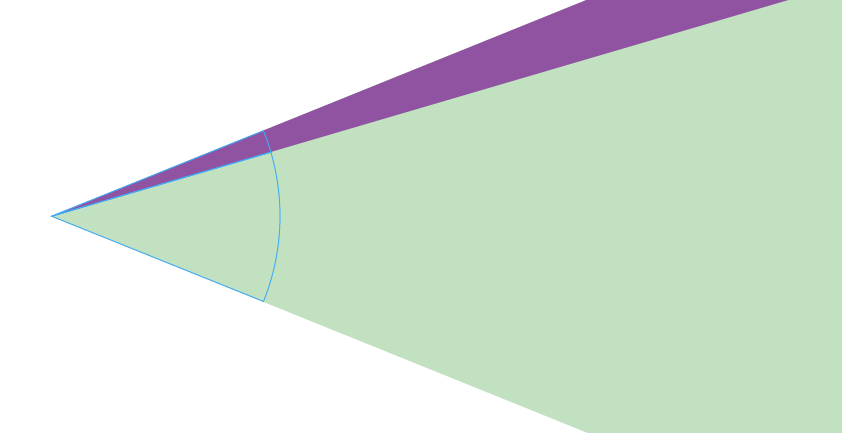 De hoek van het grote vlak kan groot of klein zijn maar groter dan de hoek van het kleine vlak.