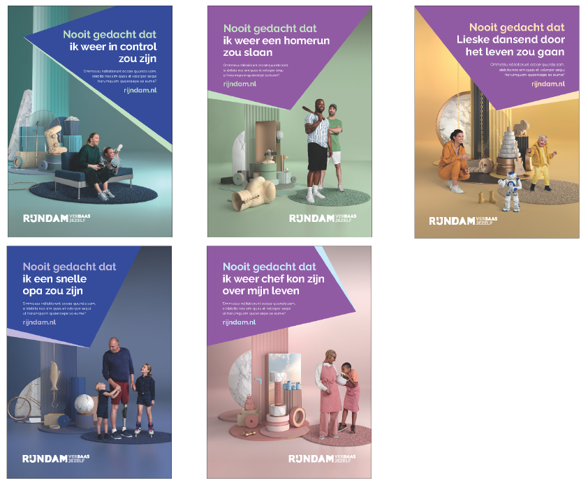 Voor de campagnebeelden gebruiken we vaste kleurencombinaties. Hieronder de kleuren per beeld.